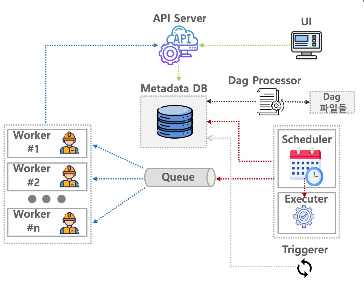 위 그림은 airflow 3.x의 아키텍처이다.