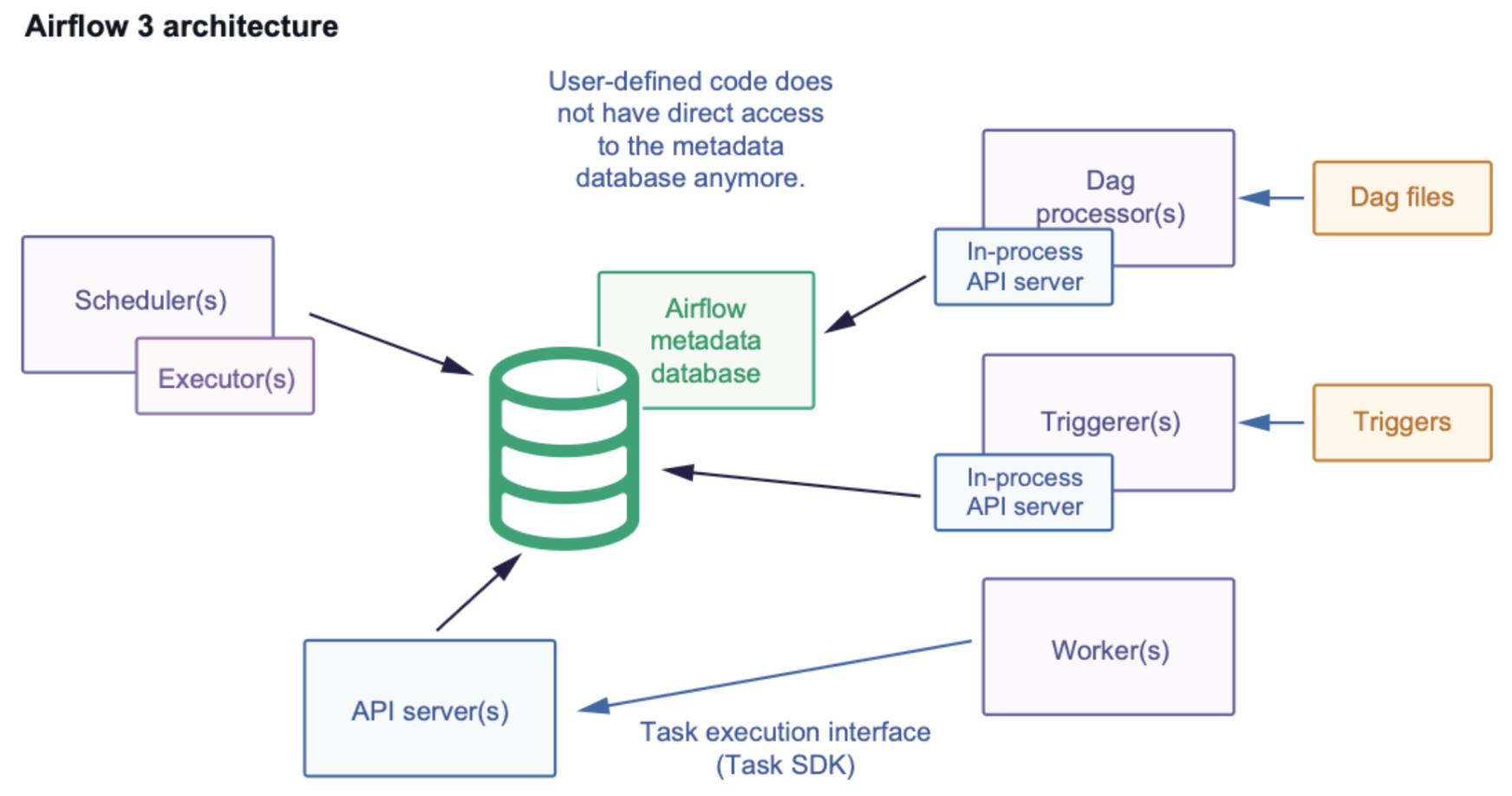 Airflow2 Worker에서 직접 Metadata DB를 접근하였으나, Airflow 3에선 API Server를 경유하여